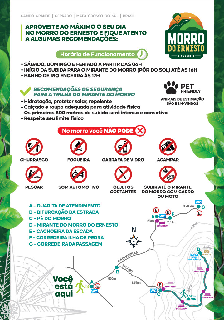 Localizado na zona rural de Campo Grande, distante cerca de 20 km do centro da capital, o Morro do Ernesto é uma das principais atrações turísticas e de ecoturismo do estado.